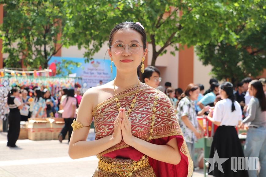 Bạn Nguyễn Nhật Minh Thư, sinh viên năm 3 chuyên ngành Thái Lan học, Khoa Đông phương học - Nhật Bản học, Trường Đại học Khoa học Xã hội và Nhân văn, chia sẻ: “Được đứng trên sân khấu với vai trò dẫn chương trình cho lễ hội là một trải nghiệm rất đặc biệt đối với tôi. Khi được sử dụng tiếng Thái và khoác lên trang phục truyền thống trong một không gian văn hóa đúng nghĩa, tôi cảm thấy những gì đã học suốt ba năm qua trở nên sống động và có ý nghĩa hơn”.