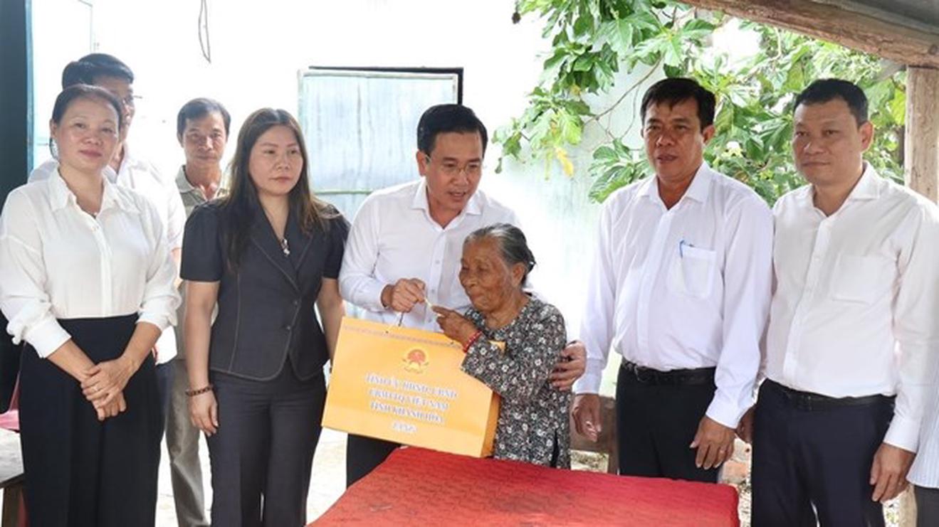 Ông Phạm Văn Hậu, Phó Bí thư Tỉnh ủy, Chủ tịch Ủy ban Mặt trận Tổ quốc Việt Nam tỉnh Khánh Hòa cùng đoàn công tác thăm, tặng quà cho gia đình bà Nguyễn Thị Mai, mẹ liệt sĩ Nguyễn Văn Hùng (xã Phước Hậu). Ảnh X.H