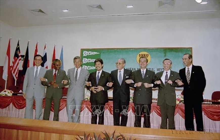Kết quả là vào ngày 28-7-1995, tại Brunei (vốn gia nhập ASEAN năm 1984), lá cờ đỏ sao vàng đã được kéo lên cùng quốc kỳ 6 nước thành viên ASEAN trong một buổi lễ kết nạp được tổ chức trọng thể nhân dịp Hội nghị Bộ trưởng Ngoại giao ASEAN lần thứ 28. "Cũng phải kể đến 4 diễn biến địa chính trị quan trọng ảnh hưởng tới việc Việt Nam gia nhập ASEAN lúc bấy giờ. Đó là Chiến tranh Lạnh kết thúc với sự sụp đổ của Liên Xô, vấn đề Campuchia được giải quyết với việc ký kết Hiệp định Hòa bình Paris, Việt Nam bình thường hóa quan hệ với Trung Quốc, Hoa Kỳ dỡ bỏ cấm vận Việt Nam. Trung Quốc và Hoa Kỳ đều ủng hộ Việt Nam gia nhập ASEAN, cho thấy uy tín quốc tế của Việt Nam được nâng cao", Giáo sư Carlyle Thayer tại Đại học New South Wales (Australia) nhấn mạnh với phóng viên Báo Quân đội nhân dân.