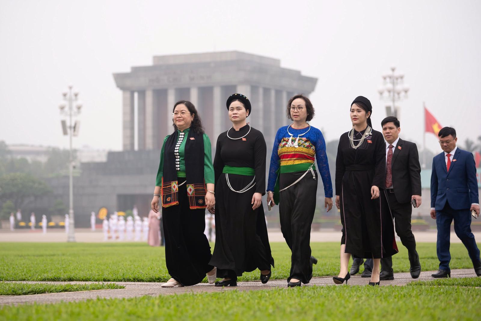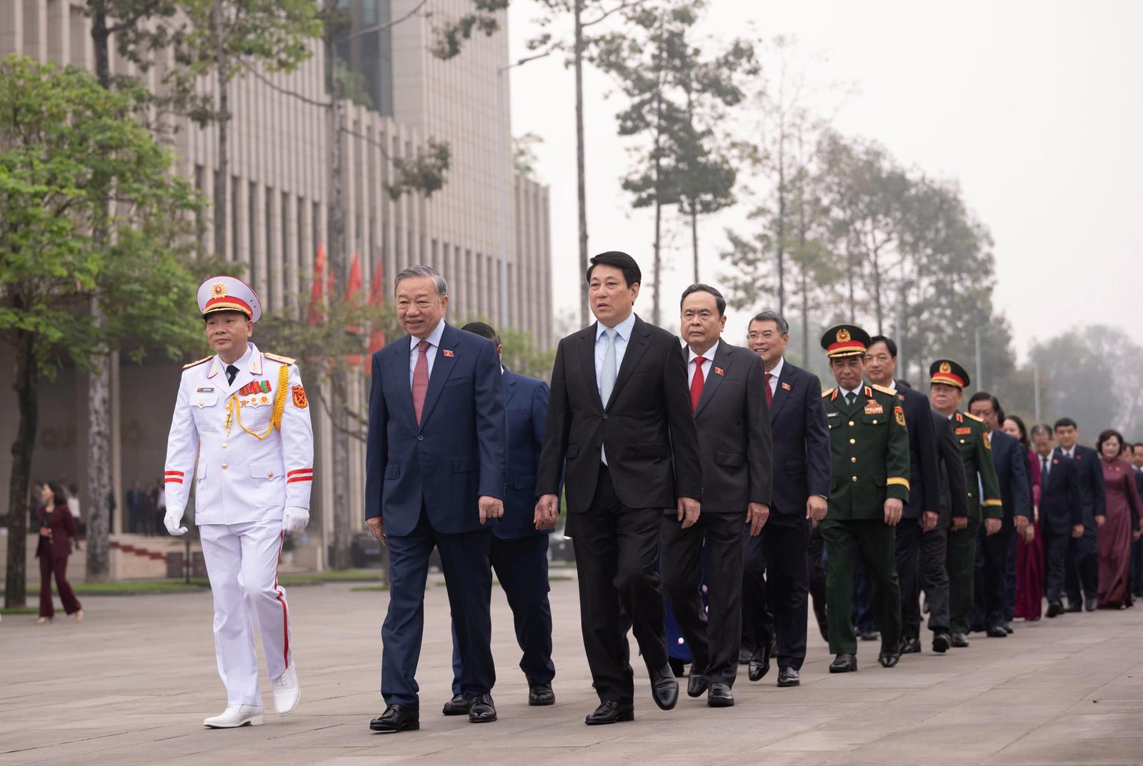 Tổng Bí thư Tô Lâm, Chủ tịch nước Lương Cường, Thủ tướng Chính phủ Phạm Minh Chính, Chủ tịch Quốc hội Trần Thanh Mẫn và các đại biểu Quốc hội vào Lăng viếng Chủ tịch Hồ Chí Minh. Ảnh: Phạm Thắng