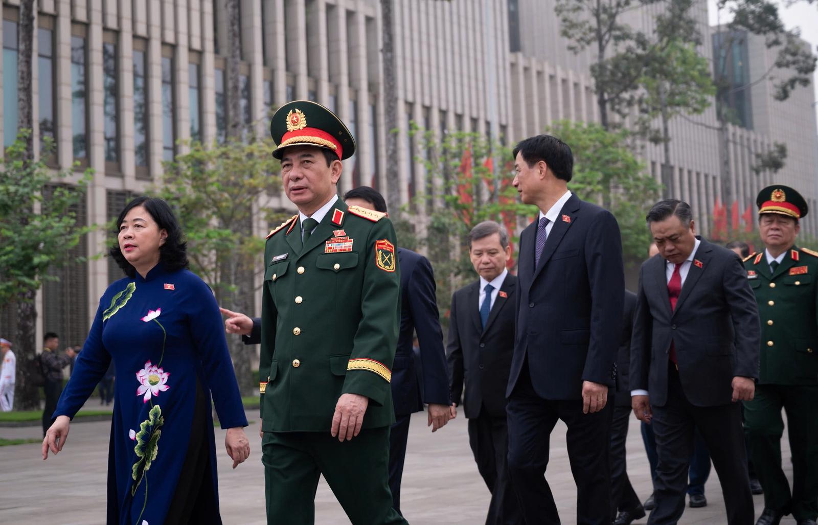 Tham dự Đoàn viếng có Tổng Bí thư Tô Lâm, Chủ tịch nước Lương Cường, Thủ tướng Phạm Minh Chính, Chủ tịch Quốc hội Trần Thanh Mẫn, Thường trực Ban Bí thư Trần Cẩm Tú, Chủ tịch Ủy ban Trung ương Mặt trận Tổ quốc Việt Nam Bùi Thị Minh Hoài.