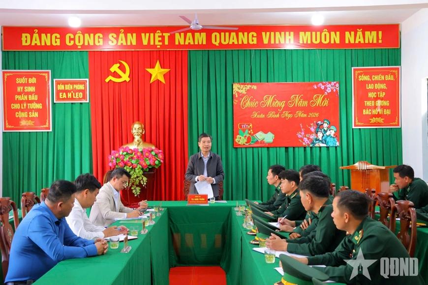 Ngày 8-2, đoàn công tác của tỉnh Đắk Lắk do đồng chí Tạ Anh Tuấn, Chủ tịch UBND tỉnh làm trưởng đoàn đến thăm, chúc Tết cán bộ, chiến sĩ các Đồn Biên phòng Ea H’leo và Ia R’vê (Ban chỉ huy Bộ đội Biên phòng tỉnh Đắk Lắk) nhân dịp tết Nguyên đán Bính Ngọ năm 2026.