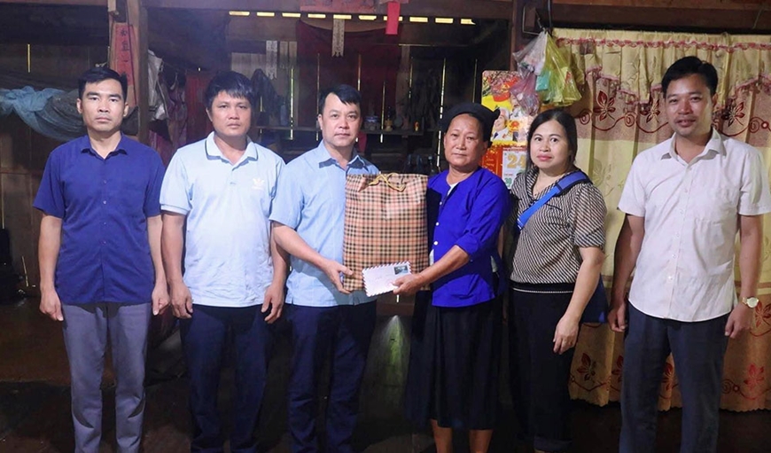 | Lãnh đạo xã Lý Bôn (tỉnh Cao Bằng) tặng quà gia đình chính sách trong xã. |