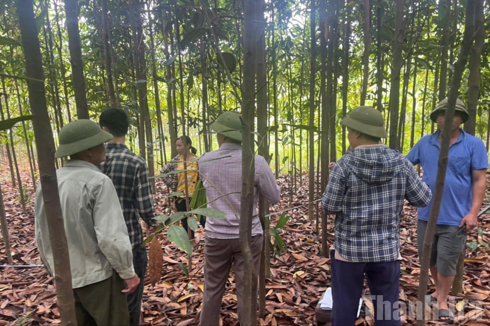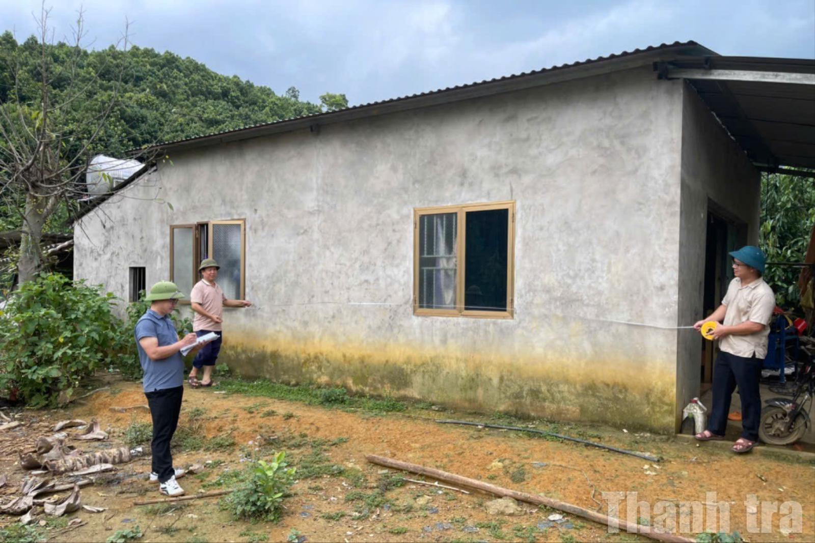 Cán bộ xã Tân Hợp đo đạc tính phương án bồi thường. Ảnh: Bùi Bình