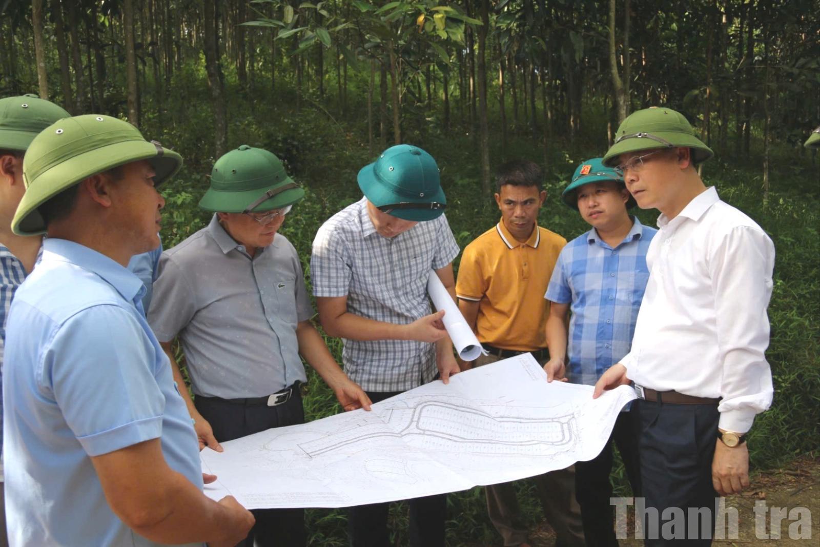 Phó Chủ tịch UBND tỉnh Nguyễn Thành Sinh kiểm tra khu vực được bố trí xây dựng tái định cư tại xã Tân Hợp. Ảnh: Bùi Bình