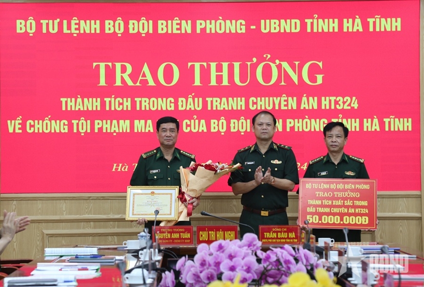 | Trung tướng Nguyễn Anh Tuấn, Bí thư Đảng ủy, Chính ủy Bộ đội Biên phòng trao thưởng cho Ban chuyên án HT324. Ảnh: ANH TẦN |