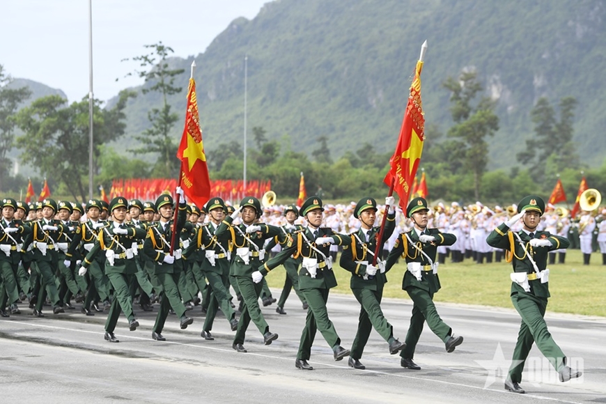 | Đảng ủy Bộ đội Biên phòng lãnh đạo xây dựng đội ngũ cán bộ toàn diện, đáp ứng yêu cầu nhiệm vụ. Trong ảnh: Khối sĩ quan biên phòng luyện tập diễu binh, diễu hành. Ảnh: TUẤN HUY |