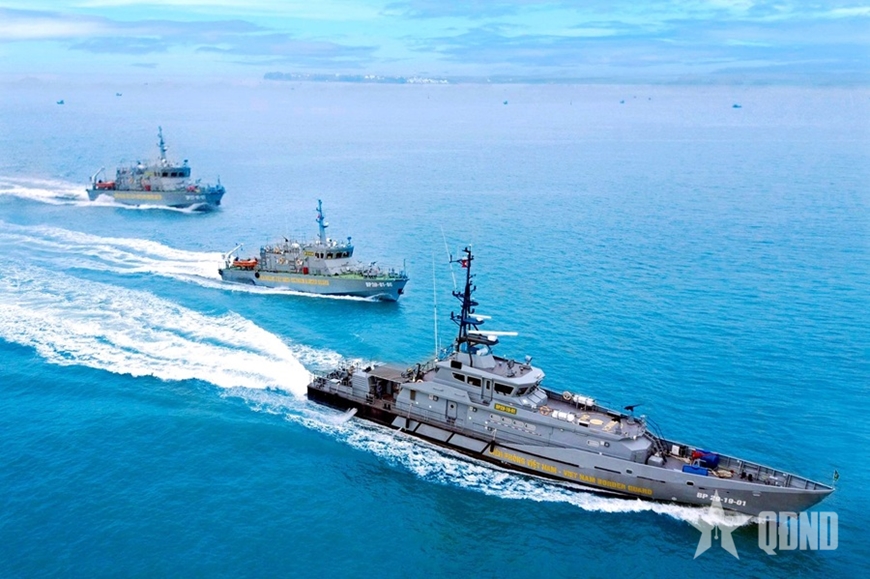 | Các tàu thuộc Hải đoàn Biên phòng 38 tuần tra trên biển. Ảnh: HÀ VINH |