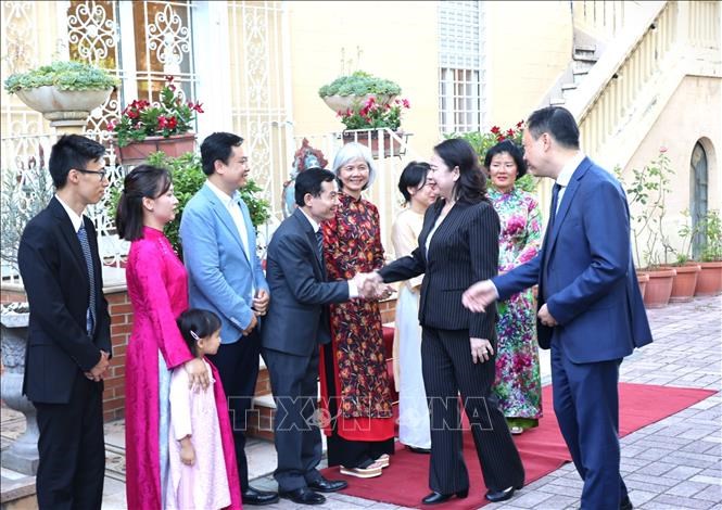 Chia sẻ với cán bộ, nhân viên Đại sứ quán, Phó chủ tịch nước Võ Thị Ánh Xuân cho biết Đảng, Nhà nước đang triển khai nhiều chính sách quan trọng, trong đó có việc tinh gọn bộ máy, sắp xếp địa giới hành chính, kỷ niệm nhiều ngày lễ trọng đại, hướng tới Đại hội XIV của Đảng, sẵn sàng bước vào kỷ nguyên thịnh vượng, phồn vinh, hạnh phúc của đất nước, đột phá phát triển đất nước.