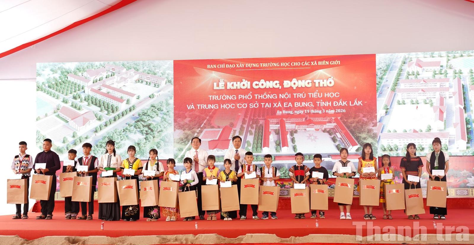 Riêng tại tỉnh Đắk Lắk, trong tháng 11/2025 và tháng 2/2026, tỉnh đã khởi công 4 trường nội trú liên cấp tại các xã biên giới Ia R’vê, Ia Lốp, Buôn Đôn và Ea Rốk, với tổng mức đầu tư hơn 549 tỷ đồng. Các dự án đang được triển khai khẩn trương, phấn đấu hoàn thành để đón học sinh vào năm học 2026-2027, đáp ứng nhu cầu học tập và sinh hoạt cho hơn 3.750 học sinh.