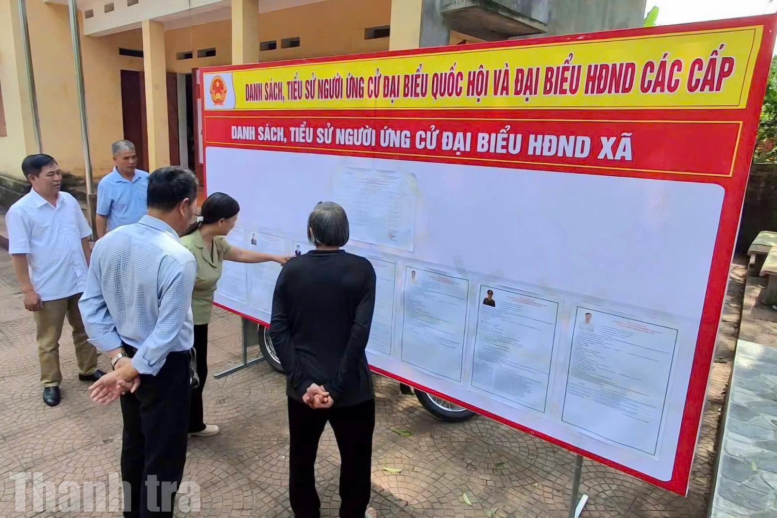Cử tri xã An Nghĩa, tỉnh Phú Thọ nghiên cứu thông tin ứng cử viên đại biểu Quốc hội và HĐND các cấp. Ảnh: Xuân Đạt