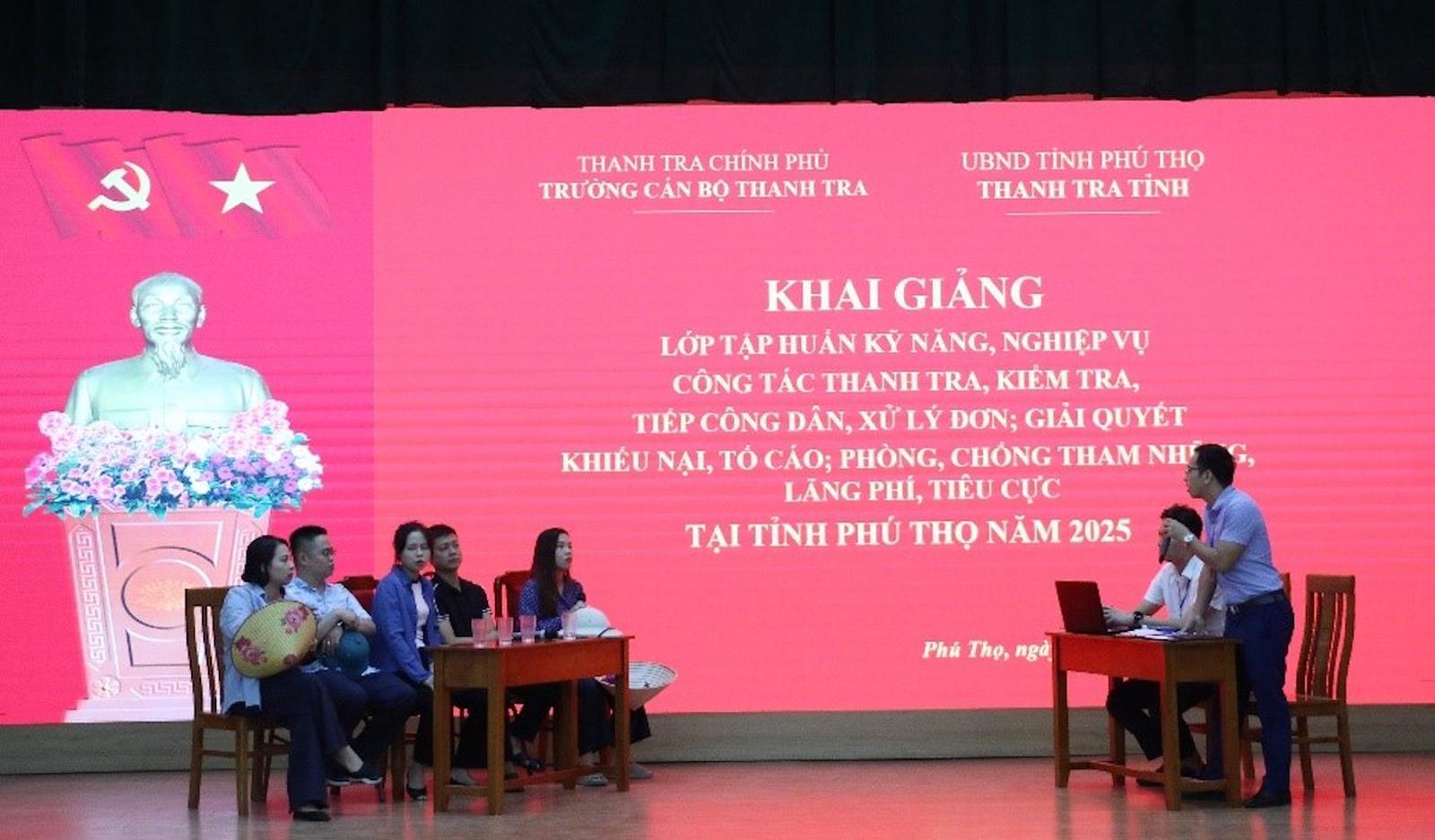 Thanh tra tỉnh Phú Thọ phối hợp với Trường Cán bộ Thanh tra tổ chức lớp tập huấn kỹ năng, nghiệp vụ công tác thanh tra, kiểm tra, tiếp công dân, xử lý đơn, giải quyết khiếu nại - tố cáo và phòng, PCTN, tiêu cực, lãng phí cho cán bộ chuyên trách tại cơ sở. Ảnh: Lê Huệ