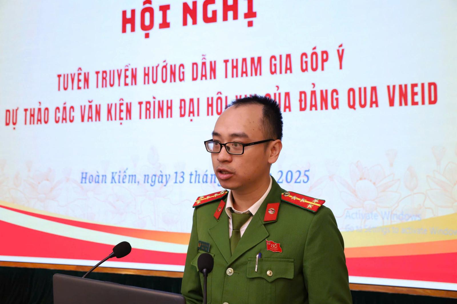 Công an phường tham mưu Đảng ủy phường tổ chức các hội nghị tuyên truyền, hướng dẫn cán bộ, đảng viên, đoàn viên, hội viên và Nhân dân tham gia góp ý dự thảo các văn kiện trình Đại hội XIV của Đảng thông qua ứng dụng VneID.