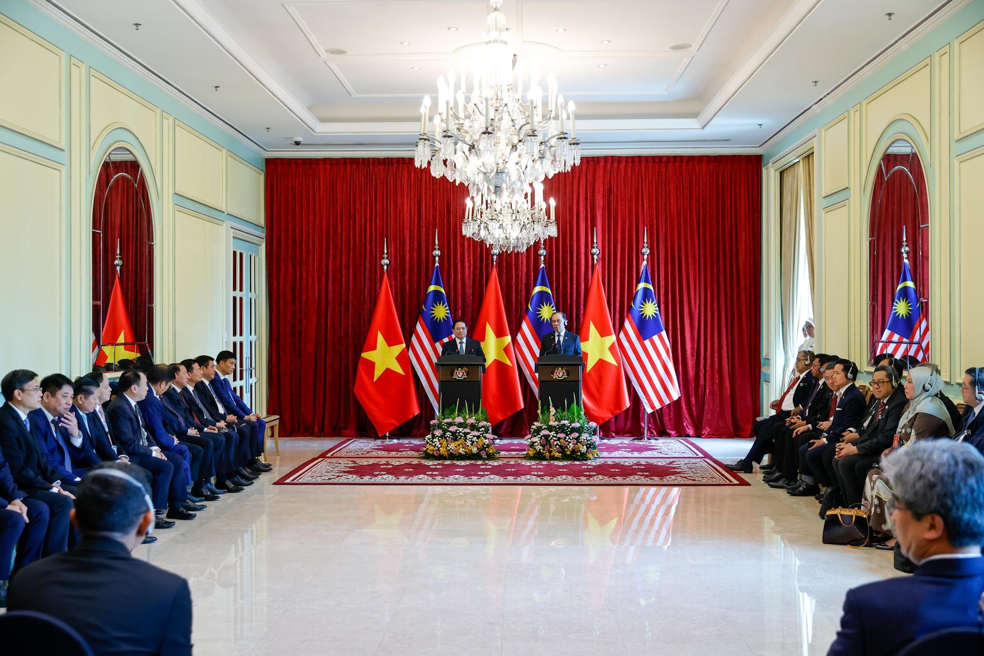 Thủ tướng Phạm Minh Chính và Thủ tướng Thủ tướng Malaysia Anwar Ibrahim chủ trì họp báo. Ảnh: VGP/Nhật Bắc