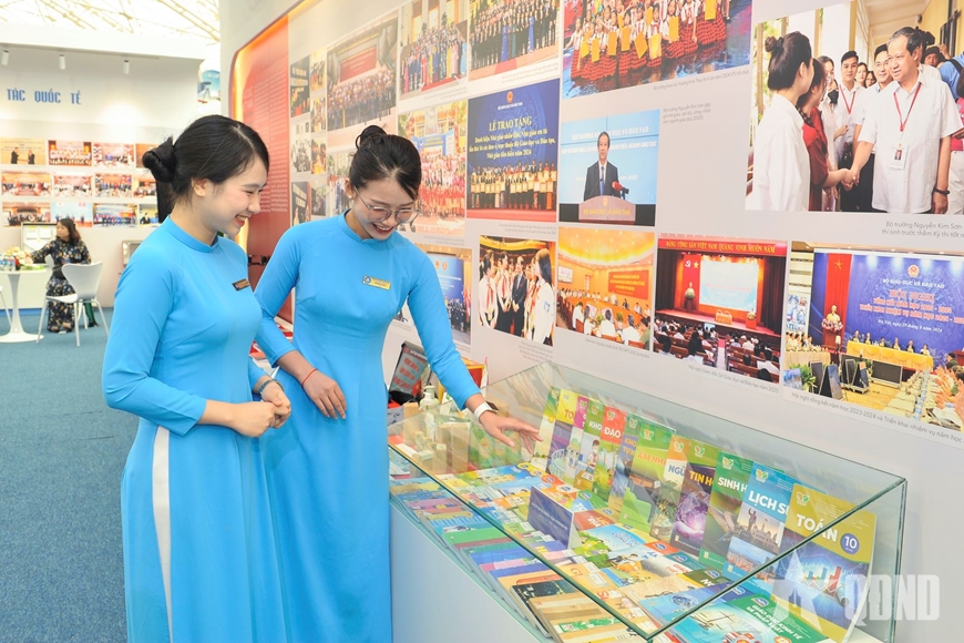 | Không gian trưng bày của Bộ Giáo dục và Đào tạo tại Triển lãm thành tựu đất nước trong dịp kỷ niệm 80 năm Quốc khánh. Ảnh: MỸ MỸ |