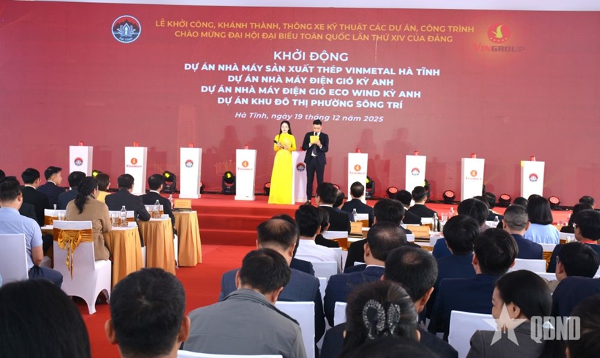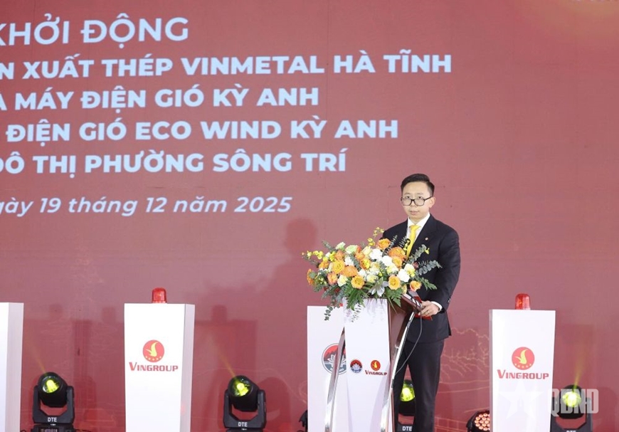 Sáng 19-12, tại Khu kinh tế Vũng Áng, Tập đoàn Vingroup phối hợp với tỉnh Hà Tĩnh tổ chức khởi động 4 dự án trọng điểm tại Hà Tĩnh, gồm: Dự án nhà máy sản xuất thép VinMetal; dự án nhà máy điện gió Kỳ Anh; dự án nhà máy điện gió Eco Wind Kỳ Anh; dự án khu đô thị phường Sông Trí.