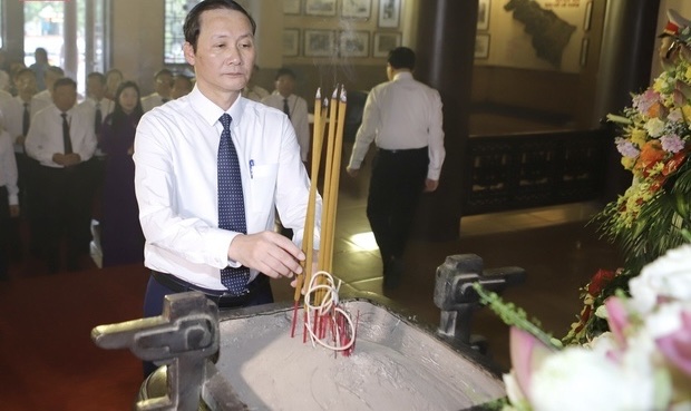 Chủ tịch UBND tỉnh Đỗ Minh Tuấn dâng hương tưởng niệm Chủ tịch Hồ Chí Minh. Ảnh: Minh Hiếu