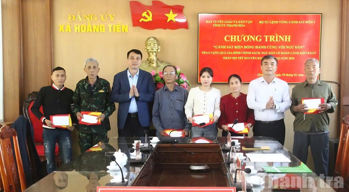 Ngày 30/1, tại phường Tĩnh Gia, xã Hoằng Tiến và xã Vạn Lộc, Ban Tuyên giáo và Dân vận Tỉnh ủy Thanh Hóa phối hợp với Bộ Tư lệnh Vùng Cảnh sát biển 1 tổ chức trao 60 suất quà cho 60 ngư dân thuộc diện chính sách, hoàn cảnh khó khăn. Mỗi địa phương được trao 20 suất quà, mỗi suất trị giá 1 triệu đồng cùng một lá cờ Tổ quốc.