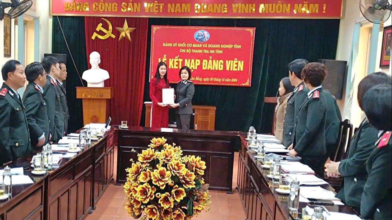 Chánh Thanh tra tỉnh Cao Bằng - Bí thư Chi bộ trao quyết định kết nạp Đảng cho đảng viên mới. Ảnh: Đinh Văn Vụ