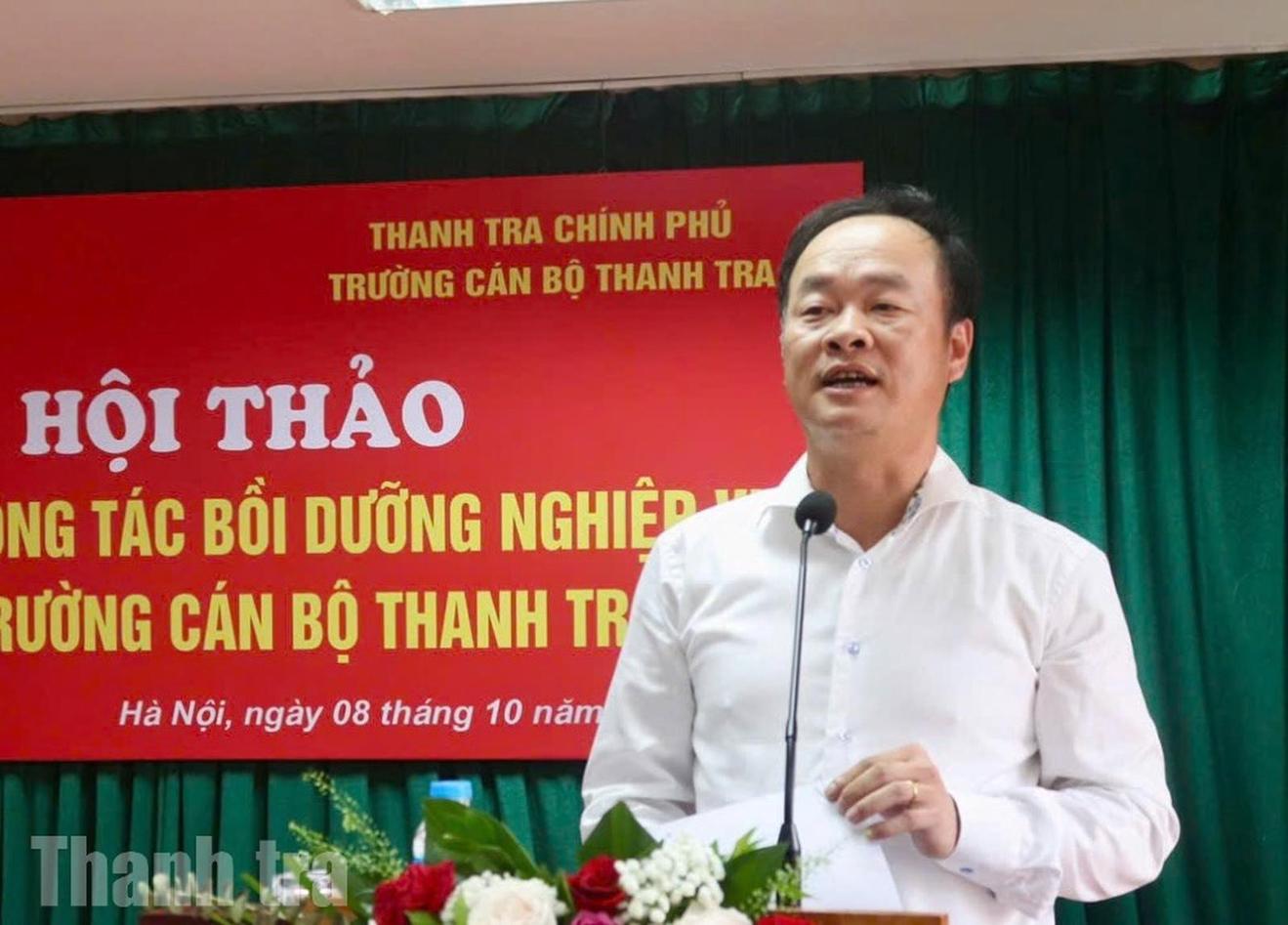 Phó Chánh Thanh tra tỉnh Phú Thọ Bùi Quang Điệp trao đổi tại hội thảo về “Đổi mới công tác bồi dưỡng nghiệp vụ của Trường Cán bộ Thanh tra” diễn ra ngày 8/10. Ảnh: T.Thanh