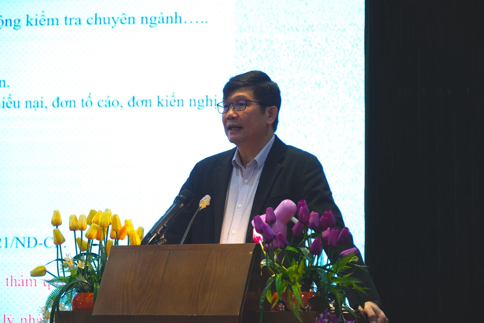 Tiến sĩ Nguyễn Tuấn Khanh, Phó Hiệu trưởng Trường Cán bộ Thanh tra phổ biến các quy định tại hội nghị. Ảnh: HL
