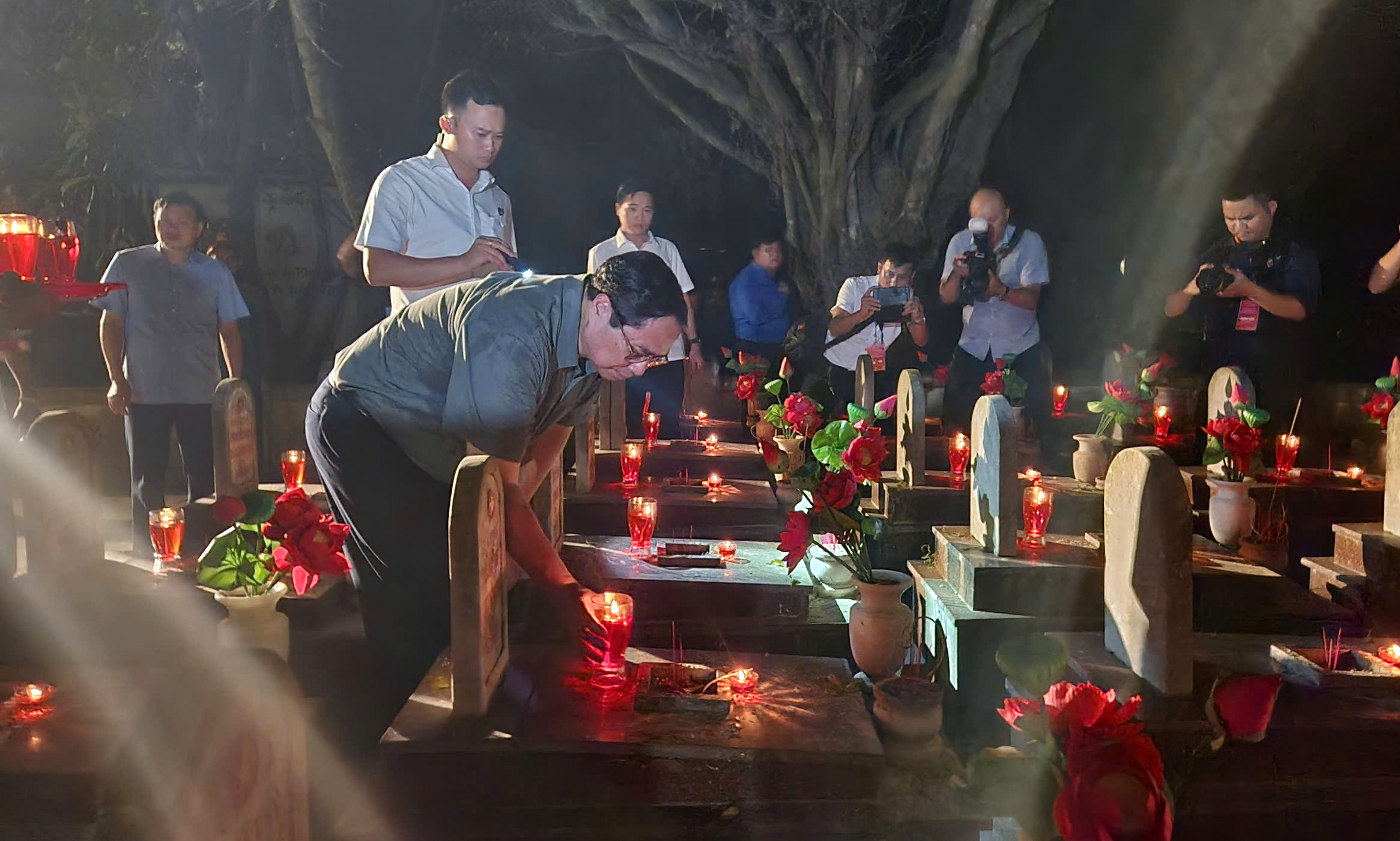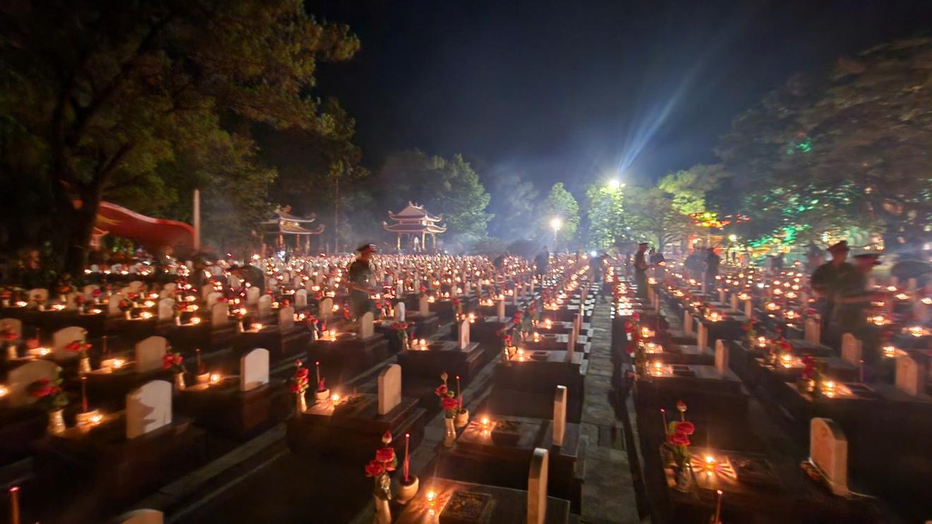 Lễ thắp nến tri ân các Anh hùng liệt sĩ cấp quốc gia tại Nghĩa trang liệt sĩ Quốc gia Trường Sơn. Ảnh: Minh Tân