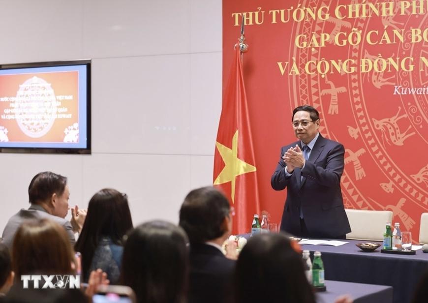 Đánh giá cao cộng đồng người Việt Nam tại Kuwait đoàn kết, tương thân, tương ái, có cuộc sống khá ổn định và hội nhập tốt vào xã hội sở tại, Thủ tướng Chính phủ Phạm Minh Chính nêu rõ Đảng, Nhà nước luôn quan tâm tới cộng đồng, coi cộng đồng người Việt Nam ở nước ngoài, trong đó có người Việt Nam tại Kuwait là bộ phận không tách rời, là máu thịt, là nguồn lực quan trọng của dân tộc Việt Nam. Đảng và Nhà nước đã có nhiều chính sách liên quan người Việt Nam ở nước ngoài nhằm hỗ trợ, chăm lo, đảm bảo quyền, lợi ích, thuận lợi nhất cho cộng đồng.