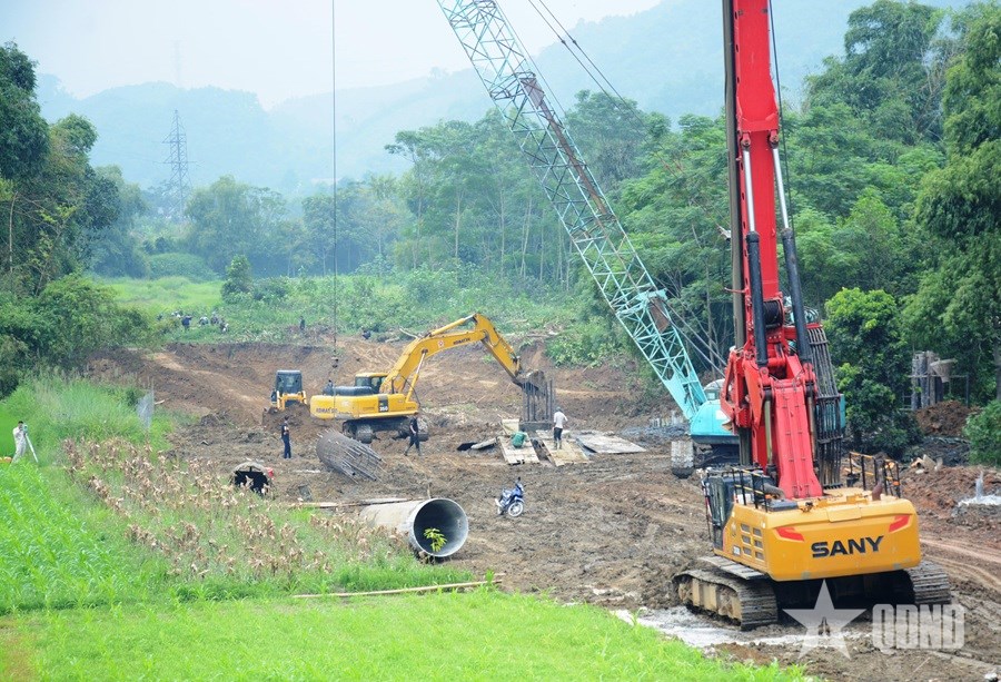 | Thi công dự án đầu tư xây dựng tuyến đường cao tốc Chợ Mới - Bắc Kạn (tỉnh Thái Nguyên). Ảnh: BẢO LINH |