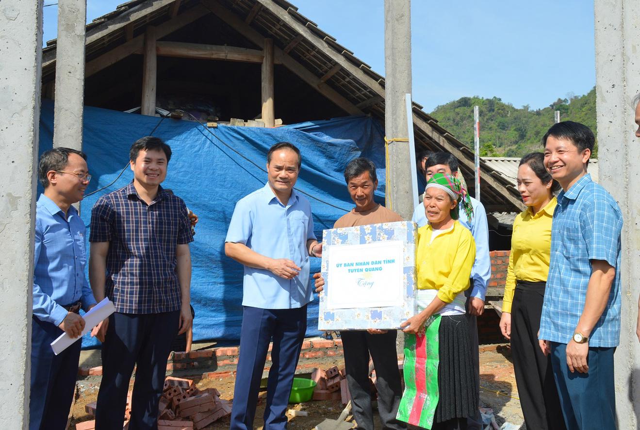 Phó Chủ tịch UBND tỉnh Tuyên Quang Hoàng Việt Phương đi kiểm tra và tặng quà cho gia đình ông Hầu Văn Chi, thôn Nà Mộ, xã Hùng Lợi, huyện Yên Sơn ngày 12/5. Ảnh: ND