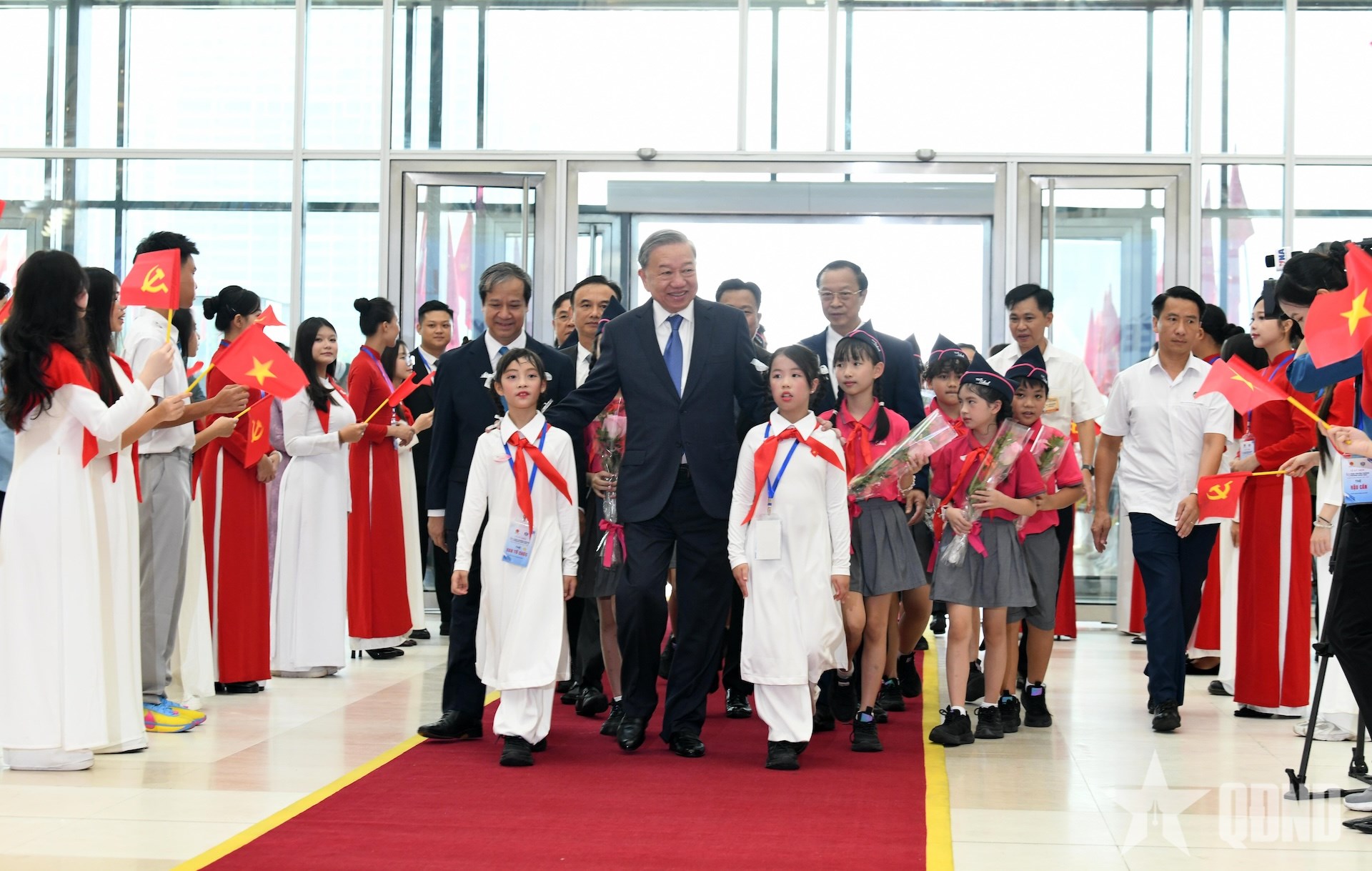 | Tổng Bí thư Tô Lâm tới dự Lễ kỷ niệm 80 năm truyền thống ngành Giáo dục và khai giảng năm học 2025-2026. Ảnh: LÂM HIỂN |