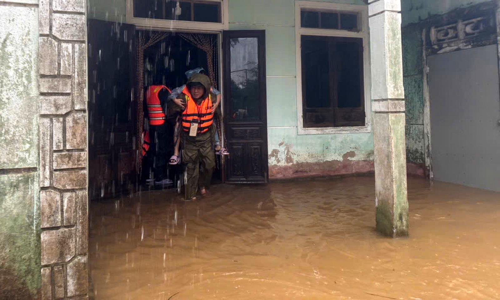 Lực lượng Công an TP Huế hỗ trợ di dời tài sản, khẩn trương sơ tán người dân ra khỏi vùng ngập lụt đến nơi trú tránh an toàn