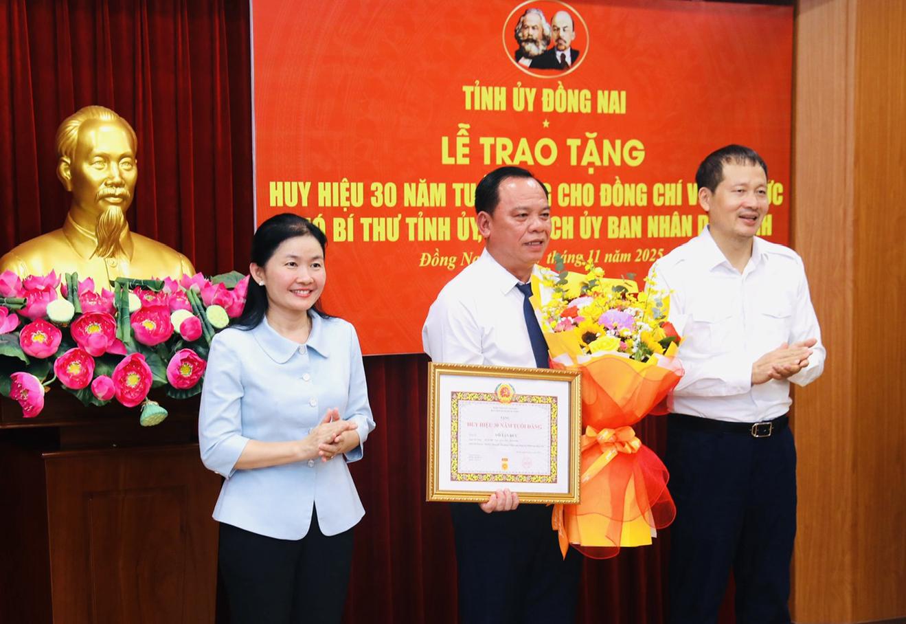Trao Huy hiệu 30 năm tuổi Đảng cho Phó Bí thư Tỉnh ủy, Chủ tịch UBND tỉnh Đồng Nai Võ Tấn Đức