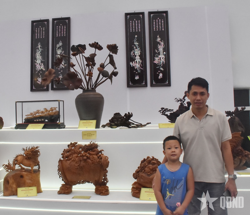 Anh Nguyễn Quang Sơn (Phường Phú Thượng, TP Hà Nội) chia sẻ, lần đầu tiên tận mắt chứng kiến nghệ nhân khảm trai làm việc, thực sự thấy choáng ngợp. Từng mảnh vỏ trai bé xíu, tưởng như vô tri, lại được bàn tay người thợ biến thành những hoa văn sống động, đầy tinh tế. “Nhìn cách bác nghệ nhân ngồi chăm chú, cẩn thận ghép từng chi tiết, tôi cảm nhận được sự kiên nhẫn và tình yêu dành cho nghề truyền thống này. Triển lãm giúp tôi hiểu hơn về nghề truyền thống”, anh Sơn nói.