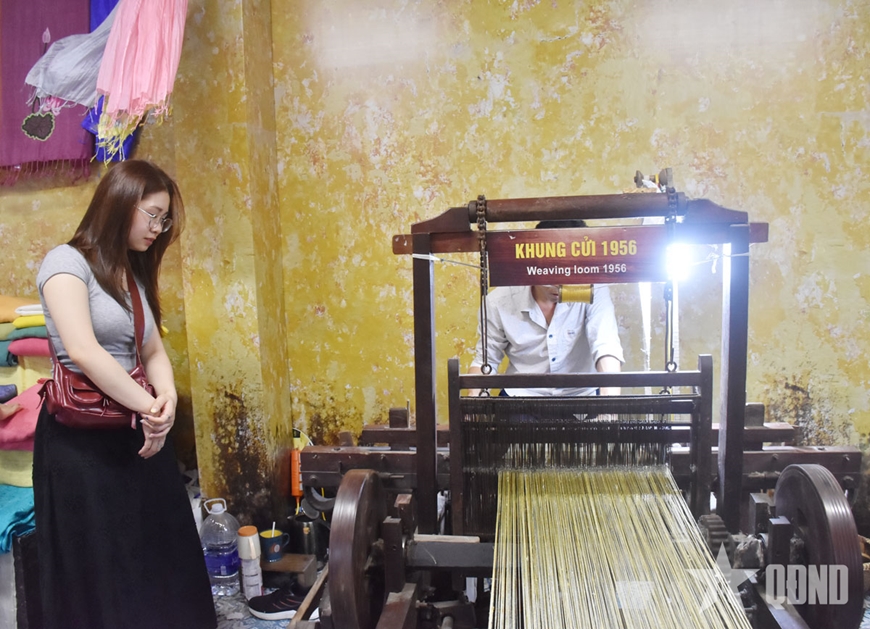 Đứng trước khung cửi gỗ cũ kỹ, nơi anh Lê Vân Nam đang dệt từng sợi tơ óng ánh thành những tấm lụa mềm mại, bạn Vũ Khánh Huyền (Hai Bà Trưng, Hà Nội), không giấu được sự xúc động chia sẻ: “Em chưa từng nghĩ dệt lụa lại công phu và tỉ mỉ đến vậy. Từ khâu quay tơ, nhuộm sợi cho đến khi tạo thành một tấm lụa hoàn chỉnh, mỗi công đoạn đều cần đến sự khéo léo và kiên nhẫn của người thợ. Nhìn bàn tay người thợ làm việc cứ như đang thổi hồn vào từng sợi vải”.