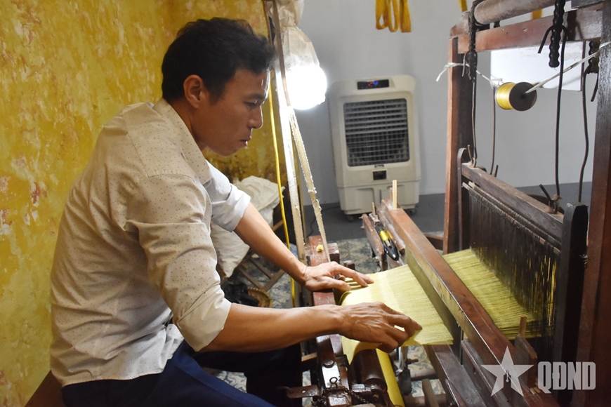 | Anh Lê Vân Nam tỉ mỉ dệt từng sợi tơ. |