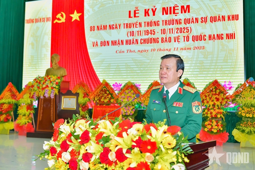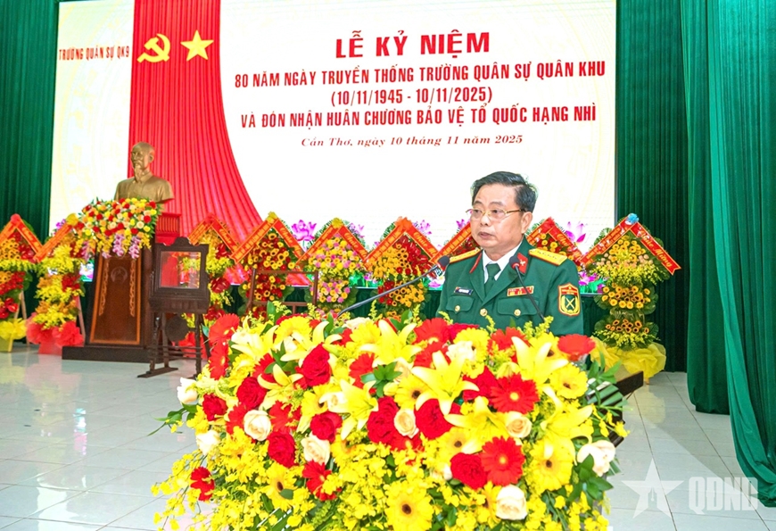 Sáng 10-11, Trường Quân sự Quân khu 9 tổ chức Lễ kỷ niệm 80 năm Ngày truyền thống (10-11-1945 / 10-11-2025) và đón nhận Huân chương Bảo vệ Tổ quốc hạng Nhì.