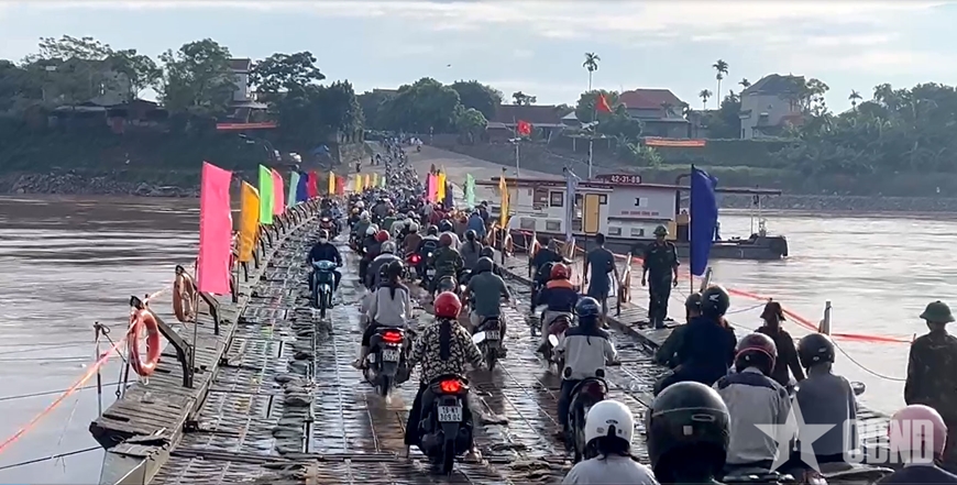 | Sau khi đảm bảo các điều kiện an toàn, cầu phao đã được vận hành để phục vụ nhân dân. |