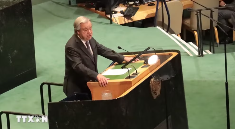 | Tổng thư ký Liên hợp quốc António Guterres phát biểu tại phiên khai mạc. Ảnh: TTXVN |