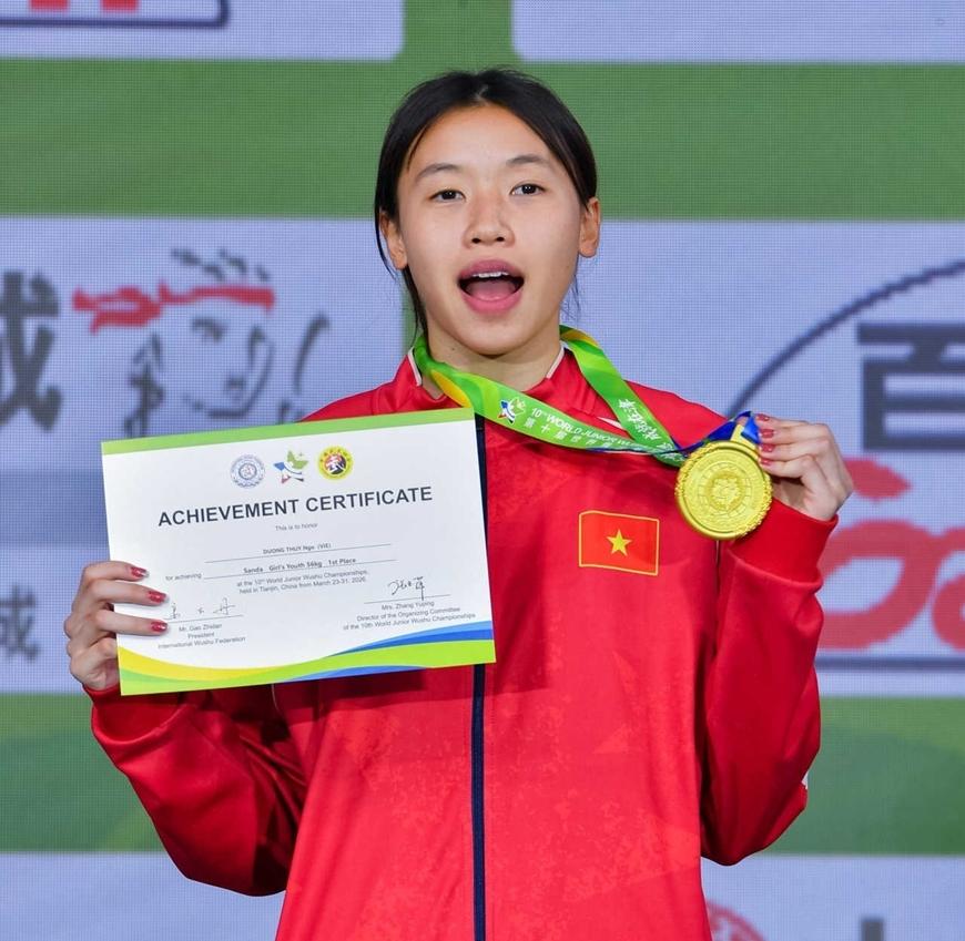 Các võ sĩ wushu trẻ Việt Nam giành 7 huy chương vàng, 2 huy chương bạc, 4 huy chương đồng, xếp hạng tư chung cuộc tại Giải vô địch wushu trẻ thế giới 2026 vừa kết thúc tại Trung Quốc.