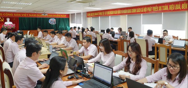 Đổi mới sáng tạo, xây dựng đội ngũ cán bộ vì dân NHCSXH đã và đang tập trung chuyển đổi số nhằm nâng cao chất lượng phục vụ Nhân dân. Ảnh: Hữu Trung