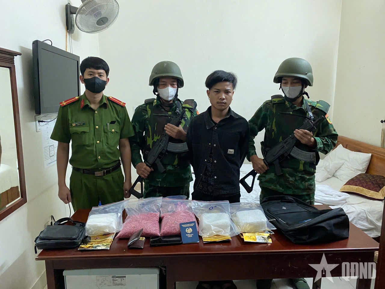 Trước đó, vào lúc 20 giờ 30 phút ngày 12-5, tại một khách sạn trên địa bàn thị trấn Lao Bảo, huyện Hướng Hóa, Phòng Phòng, chống ma túy và tội phạm (Bộ đội Biên phòng tỉnh Quảng Trị) phối hợp với Đoàn Đặc nhiệm phòng, chống ma túy và tội phạm miền Trung (Cục Phòng, chống ma túy và tội phạm, Bộ đội Biên phòng) cùng các lực lượng chức năng đã bắt quả tang đối tượng TonSakSith LatXaKham (sinh năm 2002, trú tại bản Viêng Vi Lay, huyện Thà Khẹc, tỉnh Khăm Muộn, Lào) đang tàng trữ trái phép chất ma túy.