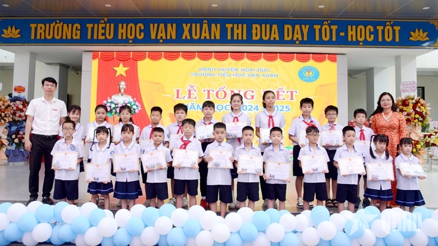 | Trường Tiểu học Vạn Xuân (xã Hoài Đức, TP Hà Nội) tổ chức tổng kết năm học 2024-2025. |