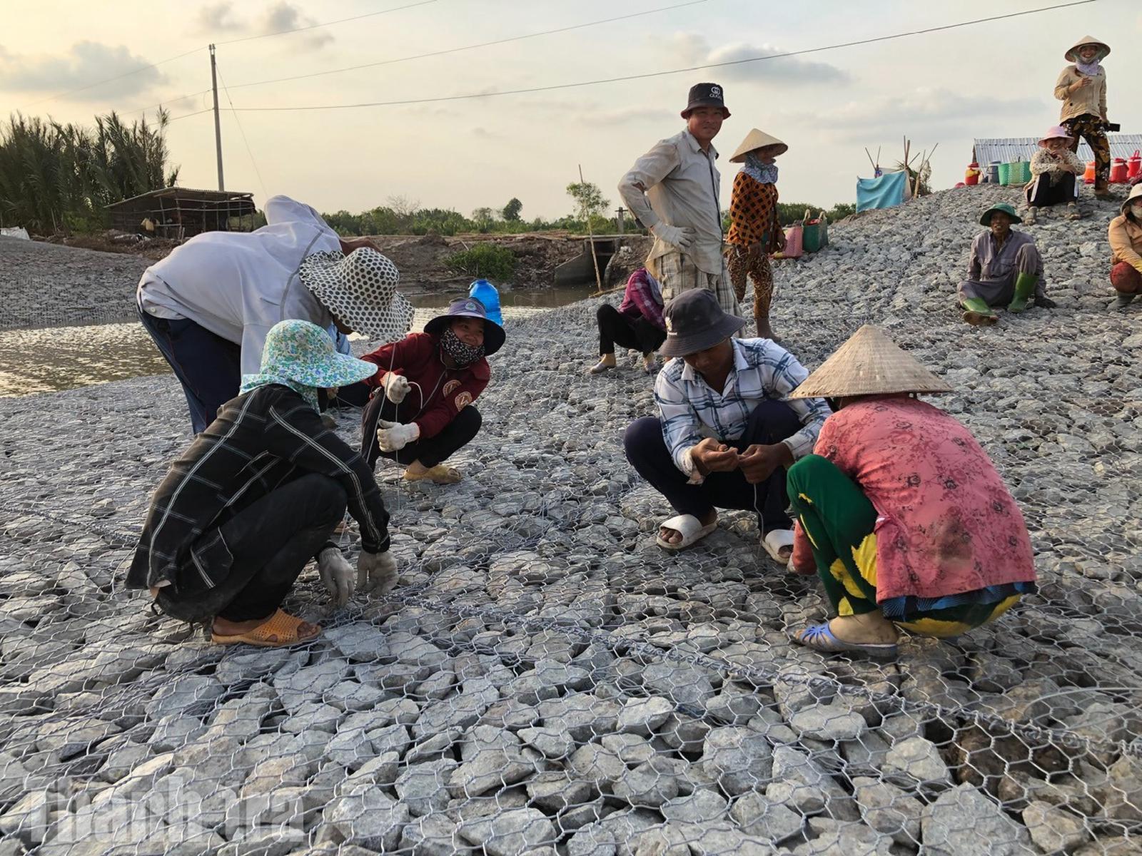Lao động làm rọ đá tại công trường xây dựng. Ảnh: Minh Nghĩa