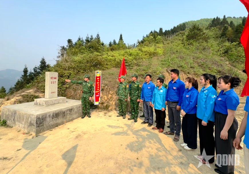 | Tuyên truyền các hoạt động trải nghiệm, phối hợp tuần tra bảo vệ đường biên, cột mốc tại thôn Hoàng Lao Chải. |